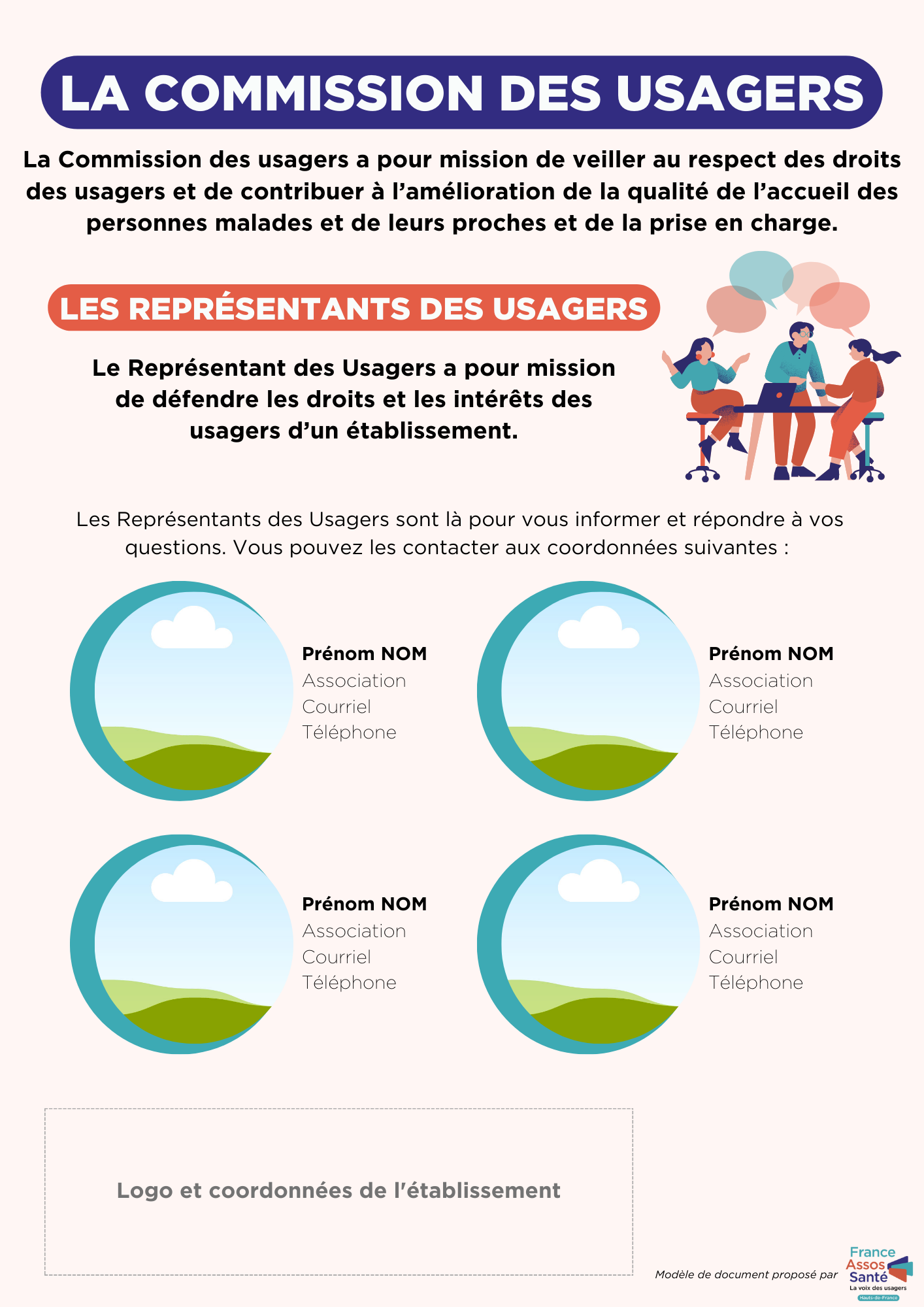 Vous formez une équipe avec les autres RU, au nombre de 4 dans chaque Commission des usagers (2 titulaires et 2 suppléants).
